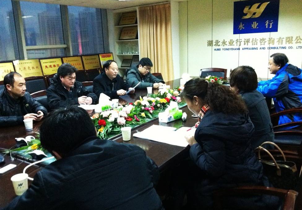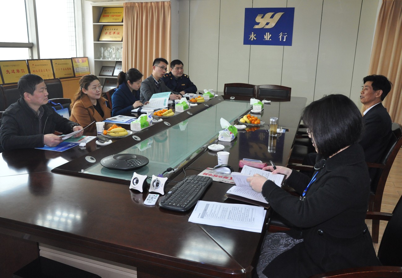 9月13日上午,由市治庸办、发改委、工商局、卫生局、水务局、民防办等单位领导和工作人员组成的武汉市星级评定检查组一行来永业行检查节能评估、工程咨询、土地评估、环评等评估咨询业务星级评定工作开展情况。 公司董事长方国成、助理总裁王琴和工程咨询部负责人文云波、助理总经理伍璇等热情接待了检查组。方董介绍了公司的基本情况和发展历程,王总汇报了永业行评估咨询相关业务的资质、运营、技术及流程管理等工作情况。大家就中介咨询收费标准、工作流程、服务时效等内容进行了深入交流。检查组对永业行评估咨询业务星级评定工作予以了充分肯定,同时也对此类工作的顺利