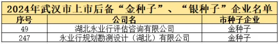 永业行旗下二家企业入选2024-2025年度武汉市上市后备“金种子”企业